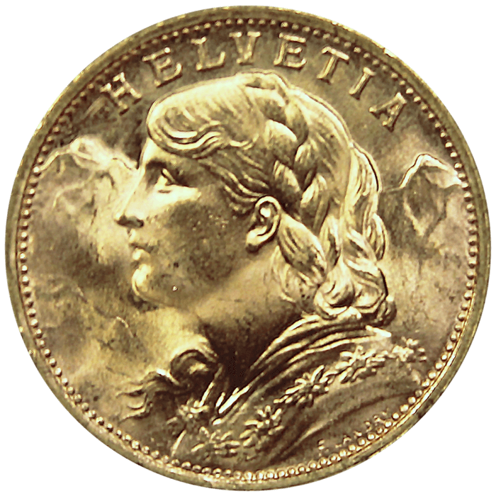 The 20 Swiss Francs is considered the Swiss equivalent of the French 20 Gold Francs. Listed on the stock exchange, sometimes considered the most beautiful gold coin, the 20 Swiss Gold Francs or "Swiss Cross" is one of the most popular gold investment coins.