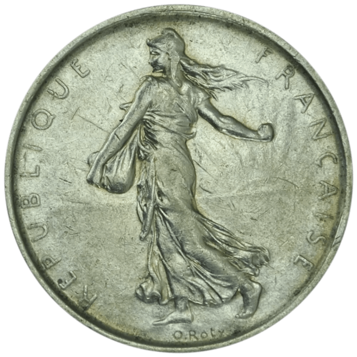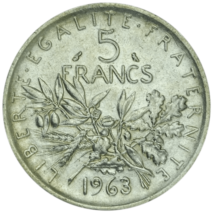 La 5 Francs Semeuse, frappée entre 1959 et 1969, est une pièce emblématique de la Ve République. Elle succède à la célèbre 50 centimes Semeuse de la Belle Époque et incarne la renaissance économique de la France après la Seconde Guerre mondiale.